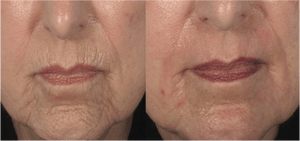 Constaté une réduction visible des ridules autour des yeux et des lèvres.