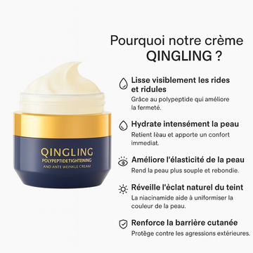 La crème Qingling utilise des peptides pour lisser rides et raffermir la peau, transformant l'apparence fatiguée en un teint plus jeune et confiant.